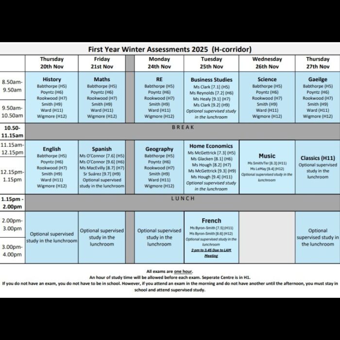 Dear Parents, Guardians and Students, As you are aware the Winter Assessments begin this Thursday 20th November for all 1st,...