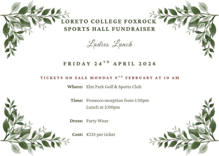 Loreto College Foxrock is delighted to announce our Sports Hall Fundraiser Ladies Lunch, which will take place on Friday 24th...