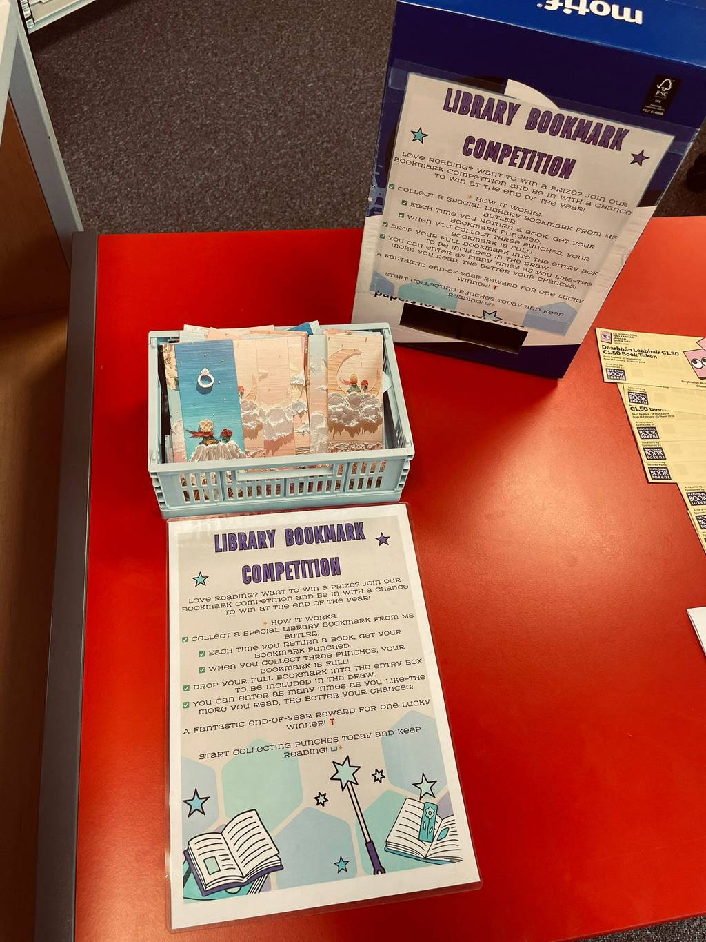 Our bookmark competition returned, encouraging students (and staff!) to read, borrow, and return books. Every completed bookmark is an entry into the end‑of‑year prize draw.