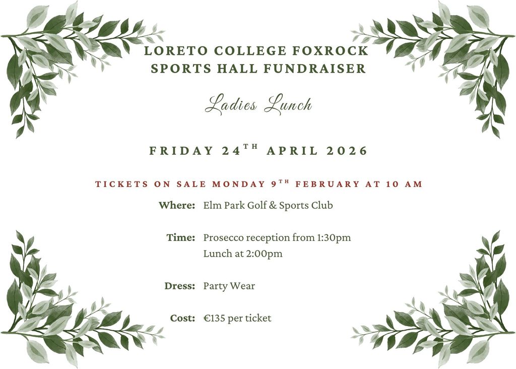 Loreto College Foxrock is delighted to announce our Sports Hall Fundraiser Ladies Lunch, which will take place on Friday 24th April 2026.