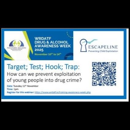 “Target; Test; Hook; Trap: How can we prevent this the exploitation of young people into drug crime” Tuesday 11th November at 1pm with CEO of Escapeline, a UK organisation working on the prevention of criminal and sexual exploitation of young people.